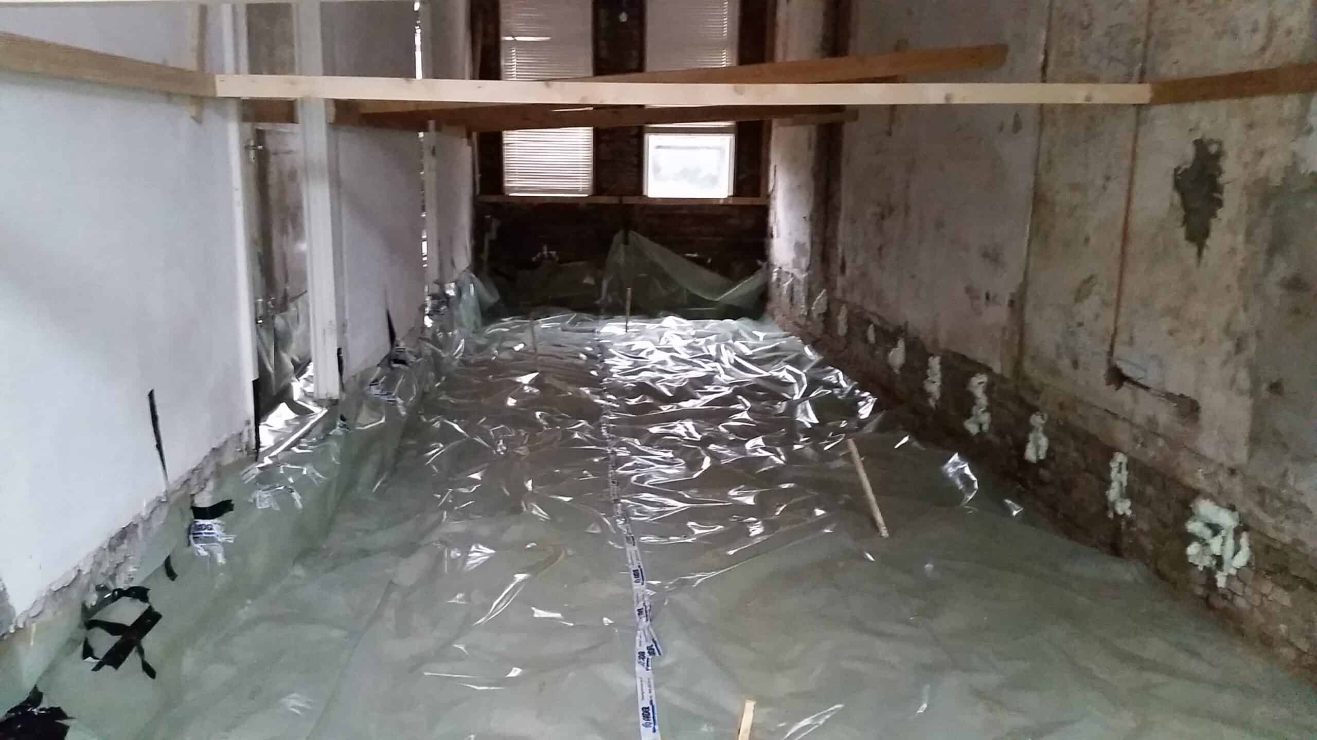 Kenmerken kruipruimte, stucwerk, schuimbeton, nieuwe installatie’s, nieuwe vloer en badkamer vervangen.